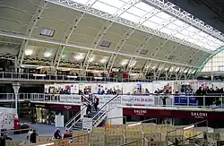 A large stamp show (philatelic exhibition) at which collectors and dealers meet