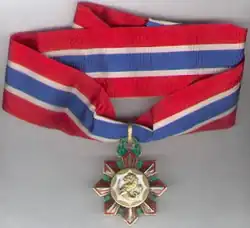 The Philippine Legion of Honor[1] (Filipino: Lehiyong Pandangal ng Pilipinas; Spanish: Legión de Honor Filipina) was established by President Manuel Roxas, through Philippine Army Circular No. 60 dated July 3, 1947. The Philippine Legion of Honor was patterned after the Legion of Merit of the United States of America, and was meant to honor both civilians and members of the military, Filipino or foreign. Originally, like the U.S. Legion of Merit, the Philippine Legion of Honor had four classes, known as degrees, with Legionnaire being the basic rank, and Chief Commander being the highest. With the reform of the Philippine system of orders and decorations in 2003, the Philippine Legion of Honor's classes were renamed "ranks" instead of "degrees", and the ranks expanded.[2][3]