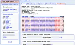 ![]() main page of phpLiteAdmin showing the various table management actions possible | |