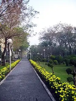 The art of garden decoration and tree training on toothbrush trees (Streblus asper) and Fukien tea trees (Ehretia microphylla). To be various animal shapes is spectacular. The decorated and trained trees look like the garden zoo with plenty of animals, which is dazzling and beautiful in combination with the green and freshness of other plants. Inside the park, there are multi-purpose grounds, pavilions, an artificial lake, a swimming pool, Lat Krabang Public Library and Lat Krabang Young Centre.[1][2][3]