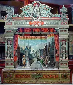 "Pickford's House" was intended to showcase his work, with the intention of securing new contacts. It was also his residence. Unlike many houses open to the public this was not owned by a member of the aristocracy but by a professional. The relative luxury of the Pickford family bedroom and dressing room which are decorated as they would have been in 1815 can be compared with the servants' bedrooms above. The house also has kitchens, scullery and laundry that are kept as they might have been in 1830.[4] At the rear of the property Pickford had his builder's yard, access being by a driveway to the right of the property. The cellar of the property is decorated as a 1940s bomb shelter.[5] The museum is also home to a collection of model toy theatres that were gathered by Frank Bradley.[4]
