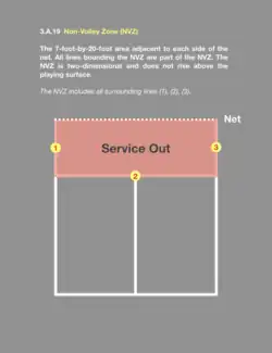 After the first two returns, either side may volley the ball—that is, return it before it bounces. The ball can never bounce more than once before it is returned. No player may volley the ball while standing in the non-volley zone or touching any of the lines around the non-volley zone, or "kitchen".