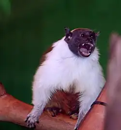 Interspecific competition with both the golden-handed tamarin and the red-handed tamarin has led to displacement of the pied tamarin.[3][5]
