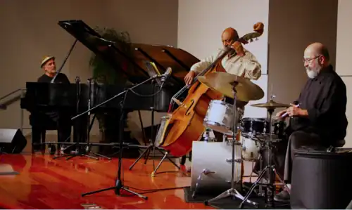 After the summer events, the director and provost persuaded Franklin to continue the concerts, called PSJ, in the Alumni Center, located on Pierce Street. With several, free Wednesday evening concerts each quarter, PSJ continued in this venue for over four years. By 2013 having outgrown the Alumni Center, PSJ moved to the Troesh Conference Center in the Zapara School of Business, its loctation ever since.[3][2]