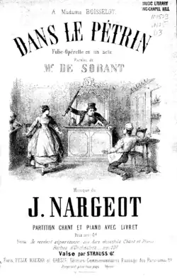 ![]() Cover page of the operetta Dans le Pétrin, 1866 | |