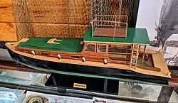 The boat is on display in Cuba at Finca La Vigía, Havana. Hemingway left the boat to his captain, Gregorio Fuentes.[17] Fuentes, one of the hired captains of the boat, is said to have been the basis for the character Santiago from The Old Man and the Sea and Eddy from Islands in the Stream. The Cuban government now owns the boat after Fuentes donated it to the people of Cuba. The sister ship of Pilar is on display in the Bass Pro Shops store in Islamorada, Florida. Hemingway fished from the sister ship, which made him have Pilar commissioned.[18]