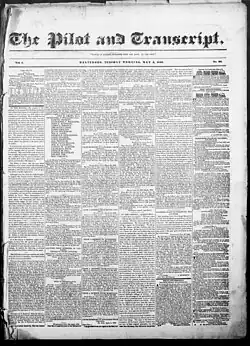![]() The front page of The Pilot and Transcript, May 5, 1840 | |