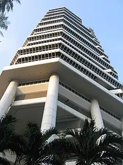 Beyond their support function, the pilotis (or piers) raise the architectural volume, lighten it and free a space for circulation under the construction.[2] They refine a building's connectivity with the land by allowing for parking, garden or driveway below while allowing a sense of floating and lightness in the architecture itself. In hurricane-prone areas, pilotis may be used to raise the inhabited space of a building above typical storm surge levels.