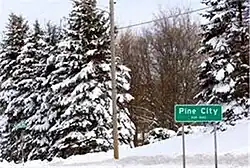 Pine City is a city in and the county seat of Pine County, in east central Minnesota, United States.[7] The population was 3,130 at the 2020 census.[4] Part of the city is on the Mille Lacs Indian Reservation. Founded as a railway town, it soon became a logging community and the surrounding lakes made it a resort town. Today, it is in part a commuter town for people working in the Minneapolis–Saint Paul metropolitan area.[8]