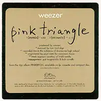 "Pink Triangle" is a song by American rock band Weezer, released on their second album, Pinkerton (1996). It was released to radio as a promotional single on May 20, 1997 by DGC Records.