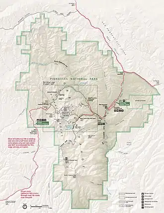 67. ^ "Status of the Caves". Pinnacles National Park. National Park Service. Retrieved December 18, 2016.