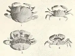 - ^ a b c Deborah L. Zmarzly (1992). "Taxonomic review of pea crabs in the genus Pinnixa (Decapoda: Brachyura: Pinnotheridae) occurring on the California Shelf, with descriptions of two new species". Journal of Crustacean Biology. 12 (4): 677–713. Bibcode:1992JCBio..12..677Z. doi:10.2307/1548849. JSTOR 1548849.