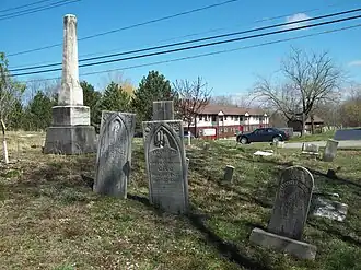 The cemetery is a burial ground for many early settlement-era families.[3] It also includes at least three veterans of the American Revolution, as well as a number of veterans from the American Civil War.[4] Asa Ames, who was a mid-19th sculptor, is also another significant burial that took place in this cemetery.[5]