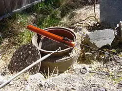 With modern video equipment, the interior of the pipe may be inspected - this is a form of non-destructive testing. A small diameter collector pipe will typically have a cleanout access at the far end and will be several hundred feet long, terminating at a manhole. Additional collector pipes may discharge at this manhole and a pipe (perhaps of larger diameter) will carry the effluent to the next manhole, and so forth to a pump station or treatment plant.