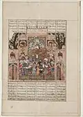 - ^ Depictions of each king are miniatures from the 16th-century illustrated manuscript, the Shahnameh of Shah Tahmasp, except that of Fereydun, which is from the Tarjumah-i Shâhnâmah, an early 17th-century Ottoman manuscript, and those of Zav and Garshasp, which are from the 14th-century Ilkhanate manuscript known as the Great Mongol Shahnameh.