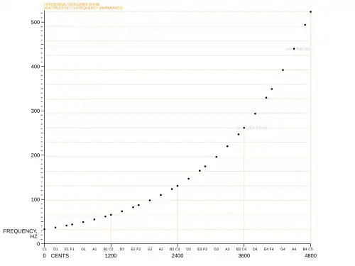 | C♯/D♭ | 17.3125 | 34.625 | 69.3 | 138.59 | 277.18 | 554.37 | 1108.75 | 2217.5 | 4435 |