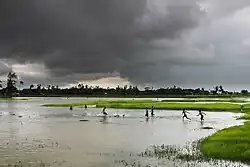 The Sundarbans area is intersected by an intricate network of interconnecting waterways, of which the larger channels are often 1.6 kilometres (0.99 mi) or more in width and run in a north-south direction. These waterways now carry little fresh water as they are mostly cut off from the Ganges, the outflow of which has shifted from the Hooghly–Bhagirathi channels progressively eastwards since the 17th century. This is due to subsidence of the Bengal Basin and a gradual eastward tilting of the overlying crust.[3] The Piyali is heavily silted and most of it has been converted to low cultivated land, leaving only a narrow channel.[4]