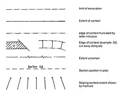 Archaeological planners use various symbols to denote characteristics of features and contexts, and while conventions vary depending on the practitioner, the following are representative: