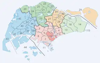Planning areas were introduced in the early 1990s following the release of the 1991 Concept Plan, which marked a shift toward a long-term and strategic urban development.[5] Since their implementation, planning area boundaries have been adopted by various government agencies for administrative and statistical purposes. For instance, the Department of Statistics of the Ministry of Trade and Industry (MTI) first used planning areas in its reporting of the 2000 census, replacing earlier divisions based on electoral boundaries.[6] The Singapore Police Force (SPF) similarly aligned its Neighbourhood Police Centres jurisdictions with planning areas in 1999, moving away from the electoral division-based boundaries of the former Neighbourhood Police Post system.[7]