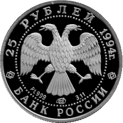 | 07.06.1994 | 5315-0002 | 25 rubles | Proof | 999/1000 | 3.198 (± 0.08) | 3.11 | 16.0 (−0.1) | 1.00 (± 0.15) | 900 |