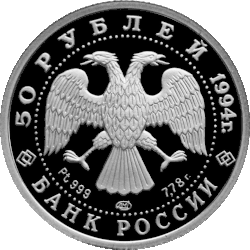 | 07.06.1994 | 5316-0003 | 50 rubles | Proof | 999/1000 | 7.88 (± 0.09) | 7.78 | 20.0 (−0.15) | 1.60 (± 0.15) | 900 |