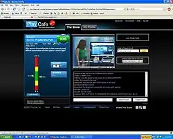 Under the name "LiveFire," the show premiered in May 2007, which featured twenty players invited by the co-founders.[1] Production of one show a day, Monday through Friday, commenced on October 29, 2007 and expanded to two shows a day on December 31, 2007. The name changed to PlayCafe in late October 2007. However, on May 30 of 2008, the show's format shifted from daily shows (Monday-Friday) to once a week shows on Thursday. On October 30, it was announced that remaining investor money had been returned, no prizes would be given after the previous week's shows (and as such, the raffle tickets earned in the previous week's shows were null and void), and live PlayCafe broadcasts would be ending. The final broadcast was held on December 18, 2008, culminating with a three-hour special.