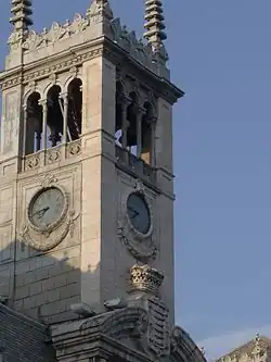 On the northern flank of its rectangular layout, stands the Casa Consistorial, seat of the Town Hall of Valladolid. The previous building, dating from the sixteenth century survived until 1879, but had been reformed over time. For example, in the mid-nineteenth century, a tower for a clock was built in the center of the facade. The existing building had a long beginning. First there was a design contest for the new Consistory, a project won by the local architect Antonio Iturralde, who presented a draft that, while the winner, not well liked. Iturralde died in 1897 and Enrique Repullés and Vargas took over the work. The Iturralde draft was discarded and a new building of Beaux-Arts architecture was constructed and completed in 1908.