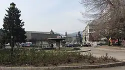 The square, semicircle in design with over-sized walls,[3] was built in 1942 by architects Ovalle and Sarabia, in parallel with the Avenida Diagonal Pedro Aguirre Cerda. The design was selected from an open architectural competition in 1941 by the "Cash for reconstruction and relief" after the 1939 Chillán earthquake. The work was funded by the Pacific Steel Company (CAP) and was completed in the mid-1950s. As a civic hub, it connects the main campus of the University of Concepción with the city center. Originally, it served as the meeting place of European immigrant families who arrived in Concepción. Its surrounding buildings, neoclassical in style, are of the late 1940s era, with interior terraces and balconies influenced by Parisian around of the square.[3] There were also homes of foreign engineers and technicians who emigrated to Concepción to work on CAP and later in Siderúrgica Huachipato. Still later, several of these houses were inhabited by Chilean residents. In 1950, a round fountain was installed in the center of the square.