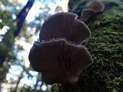 Pleurotus purpureo-olivaceus is a gilled fungus native to Australia and New Zealand.[1][4][5][6] It is found on dead wood of Nothofagus trees.[2][7] Although morphologically similar to some other Pleurotus fungi, it has been shown to be a distinct species incapable of cross-breeding and phylogenetically removed from other species of Pleurotus.[1][8]