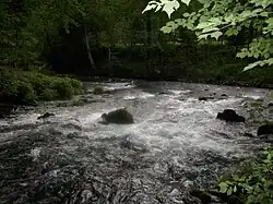 The Pliva river flows from West to East, is 26.8 kilometers long, and has an average discharge artificially set for a biological minimum of 3.0 m3 near town of Jajce at the waterfall site. Total watershed area of the Pliva is 1,326 km2.[1] Its source is some 8 kilometers upstream of the town of Šipovo near Pljeva at the foot of the mountain of Smiljevac-Jastrebnjak, where the Pliva springs out from two very strong karstic springwells at 483 meters above sea level. The main tributary of the Pliva is the Janj, that flows into the Pliva from the right, in the center of the town of Šipovo. At the confluence, both the Janj and the Pliva are approximately the same size, and both rivers have the same amount of water.