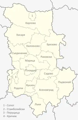 ![]() Location of Plovdiv Province in Bulgaria | |