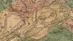 About 1806, Abijah Smith came to Plymouth from Derby, Connecticut, intending to mine, ship, and sell coal. Smith and his business partner, Lewis Hepburn, bought a 75-acre plot (called Lots 45 and 46) on the east side of Coal Creek. In the fall of 1807, Smith floated an ark down the Susquehanna River loaded with about fifty tons of anthracite coal; it was shipped to Columbia in Lancaster County.[11] As time progressed, additional coal mines and collieries were constructed throughout the township. Railroads and canals were also constructed to aid in the transportation of coal. Coal mining remained the chief industry in Plymouth Township well into the 20th century.[12]