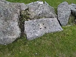 The progress of this extension was stopped by a dispute between the South Devon Railway Company and the mortgagee in possession of the Dartmoor Railway, a line 24 miles long, constructed in 1820. This railway was crossed on the level at right angles by the South Devon line. The mortgagee not getting the terms he asked from the South Devon Railway, brought immense blocks of granite from his Dartmoor quarries, and deposited them on the line where the South Devon wished to cross. This effectually prevented the railway from proceeding with the line and they soon arranged a compromise, which had the desired effect, the granite blocks being then removed by the mortgagee of the Dartmoor Railway.[24]