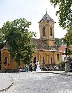 Požarevac Church (Serbian Cyrillic: Пожаревачка црква, Hungarian: Pozsarevacska szerb ortodox templom), officially Church of St. Archangel Michael, in Szentendre is a Serbian Orthodox church in Hungary named after the town of Požarevac in Serbia. The church is one of a few of Serbian Orthodox churches in the town and part of the Eparchy of Buda. It was completed in 1759 and consecrated in 1763.[1] According to tradition, it was built next to the Bučina stream. The neighborhood around the church was also known as Požarevačka Mahala. The iconostasis of the Pozarevac Church is older than the present church since it was originally installed in the "old" Cathedral Church in 1742.[1] The church was damaged during a major flood in 1838 but was soon renovated. The latest renovation of the church took place in 2018.