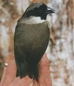 The poʻo-uli (Melamprosops phaeosoma) [3] or Hawaiian black-faced honeycreeper is an extinct species of passerine bird that was endemic to the island of Maui in Hawaiʻi. It is considered to be a member of the Hawaiian honeycreepers, and is the only member of its genus Melamprosops. It had a black head, brown upper parts and pale gray underparts. This bird inhabited only the wetter, easternmost side of Maui, where it had rapidly decreased in numbers. With extinction threatening, efforts were made to capture birds to enable them to breed in captivity. These efforts were unsuccessful; in 2004, only two known birds remained, and since then, no further birds have been sighted. A 2018 study recommended declaring the species extinct, citing bird population decline patterns and the lack of any confirmed sightings since 2004,[4] and in 2019, the species was declared extinct.