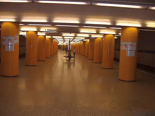 The station was opened on May 28, 1978, three years after the rest of the line.[2] It wasn't built with the rest of the line, as a city highway was planned for the space where the surface entrances would have been. After the scrapping of the highway plans, it was built along the operational line with the trains going slower through the construction zone.