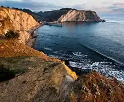A variety of fauna and flora occur in the Point Arena area which is a range demarcation for occurrence of some species. For example, the California giant salamander occurs to the south while the Pacific giant salamander occurs to the north.[16] It is also the type locality for the Point Arena mountain beaver, Aplodontia rufa nigra, which is federally listed under the Endangered Species Act as endangered, and is considered a mammalian species of special concern by the State of California.[17] According to the U.S. Fish and Wildlife Service, the habitat for this subspecies of mountain beaver lies only within a 24 sq mi (62 km2) area around Point Arena. The biggest threat to the PAMB is loss of habitat, and it was officially listed as an endangered species on December 12, 1991. Much local folklore revolves around this mysterious creature.[18]