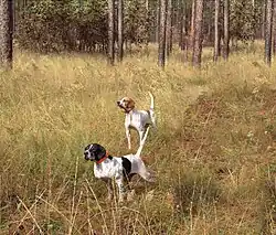 Many writers consider the Pointer to be the ultimate pointing dog breed because of its sensitive nose, big stylish movements and flashy pointing stance.[1][2][5][15] The Pointer is the most popular pointing dog breed used by sporting estates in the United Kingdom and commercial shooting preserves in the United States, they are also the most popular and successful pointing breed used in pointing dog trials in both countries.[2][3]