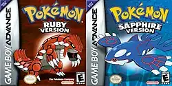 ![]() North American box art for Pokémon Ruby and Pokémon Sapphire depicting the legendary Pokémon Groudon and Kyogre respectively | |