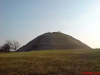 Large mounds up to 50 meters in diameter are found not only in Kraków, but also in Przemyśl and Sandomierz. among other places (about 20 total).[73] They were probably funeral locations of rulers or chiefs, with the actual burial site, on the top of the mound, long lost.[74] Besides the mounds, the degree of gord development and the grzywna treasure point to Kraków as the main center of Vistulan power (instead of Wiślica, as also suspected in the past).[69]