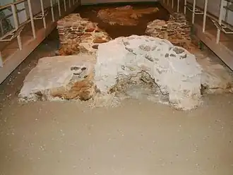 In Poland, the earliest archeological sites considered Slavic include a limited number of 6th-century settlements and a few isolated burial sites. The material obtained there consists mostly of simple, manually formed ceramics, typical of the entire early Slavic area. It is on the basis of the different varieties of these basic clay pots and infrequent decorations that the three cultures are distinguished.[24] The largest of the earliest Slavic (Prague culture) settlement sites in Poland that have been subjected to systematic research is located in Bachórz, Rzeszów County, and dates to the second half of 5th through 7th centuries. It consisted of 12 nearly square, partially dug-out houses, each covering the area of 6.2 to 19.8 (14.0 on the average) square meters. A stone furnace was usually placed in a corner, which is typical for Slavic homesteads of that period, but clay ovens and centrally located hearths are also found.[12] 45 newer dwellings of a different type from the 7th/8th to 9th/10th centuries have also been discovered in the vicinity.[25][26]