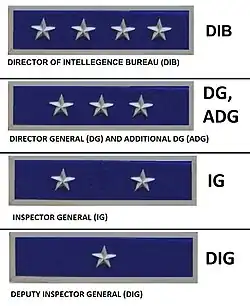- ^ Shoulder insignia rank only used in the Maharashtra Police.