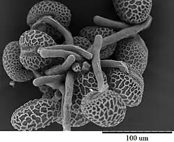 - ^ a b Derksen J, Rutten T, van Amstel T, de Win A, Doris F, Steer M (1995). "Regulation of pollen tube growth". Acta Botanica Neerlandica. 44 (2): 93–119. Bibcode:1995PlBio..44...93D. doi:10.1111/j.1438-8677.1995.tb00773.x. hdl:2066/29215. S2CID 31051678.