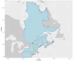 Potter's holly fern has been documented in Vermont, New Hampshire, New York, Pennsylvania, Maine, Massachusetts, Quebec, Nova Scotia, and New Brunswick.[4]