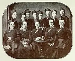 The North American College seminary was founded in 1859 by Pope Pius IX. He located the new seminary in a former Dominican and Visitation convent on the Via dell'Umiltà, near the Trevi Fountain.[3][4]The NAC was opened ceremonially on 8 December 1859, and received a formal visit from the pope on 29 January 1860.[5] This original campus, still owned by the NAC, is called the Casa Santa Maria. The NAC was granted status as a pontifical university by Pope Leo XIII in 1884.[6]