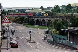 ![]() Pontlottyn, with the railway viaduct visible in the background | |