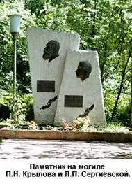 In 1918 Krylov began his second major work on Western Siberian flora — the work was completed by his students after his death. In 1925 he was elected a corresponding member of the All-Ukrainian Academy of Sciences and in 1929 a corresponding member of the Academy of Sciences of the USSR.[3] On the basis of his work, the geobotanical maps of the Krasnoyarsk Region were created in the 1930s. In 1931, Krylov was an advisor to an expedition conducted by the Novosibirsk branch of the Institute of Chemistry and Pharmacy to study in Transbaikalia medicinal plants and plants with valuable essential oils. To do this, he undertook a trip with his assistant L. P. Sergiyevskaya to the Aga Steppe — this was Krylov's last botanical trip.[1] Uncontrollably galloping horses pulling the carriage in which Krylov and Sergiyevskaya were traveling caused a severe accident. The carriage overturned, and both scientists were badly injured and had to return to Tomsk. Krylov's health worsened and he died in December 1931. During his career, he organized 36 botanical expeditions, 24 of then made within Russian territory. Krylov scientifically described 12 new species and many taxa within species.[8]