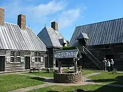 ![]() The entrance into the replica of the Habitation at Port-Royal. | |