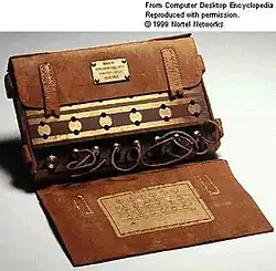 The Portable Commutator was a telecommunications device that was used by the military during World War I. It was manufactured by Northern Electric Company.[1] It was used as a one-wire telegraphic switchboard.[2]