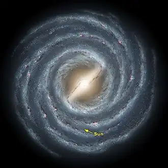Artist's rendering shows a view of our own Milky Way Galaxy and its central bar as it might appear if viewed from above